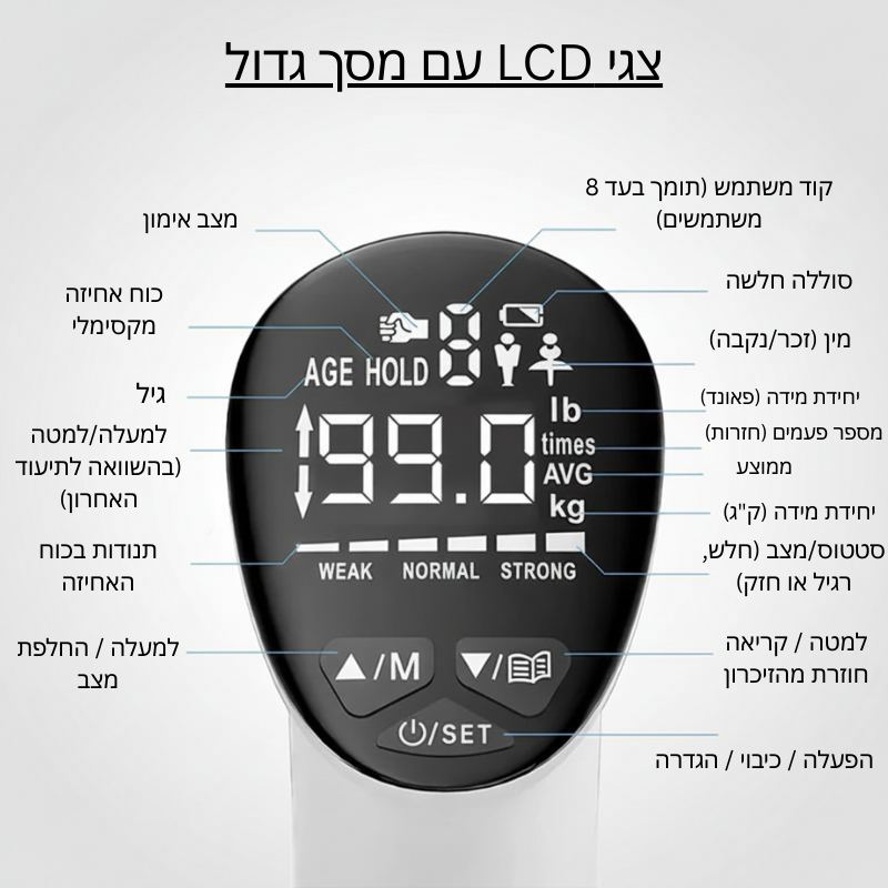 • מסך LCD גדול – קריאה נוחה של הנתונים בכל תאורה